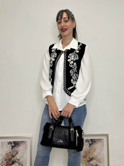 Bandolera 2 cuerpos pespuntes corazón Noco