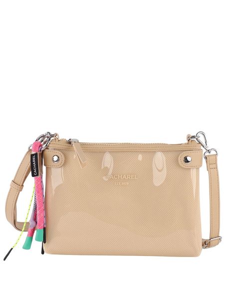 Cuenta con asa bandolera regulable, que permite adaptarlo cómodamente al hombro o cruzado. En la parte frontal destaca el logo de CACHAREL al tono, integrado de forma elegante y discreta. Como detalle distintivo, incorpora un charm decorativo multicolor, que añade un punto desenfadado y original.