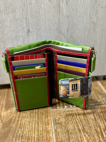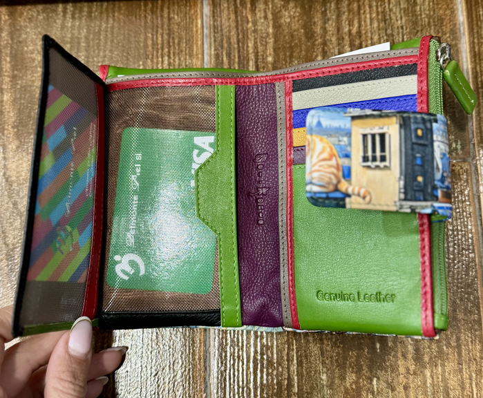 - CAPACIDAD: 10 tarjetas, 2 billeteros, 2 monederos con cremallera y huecos para fotos.