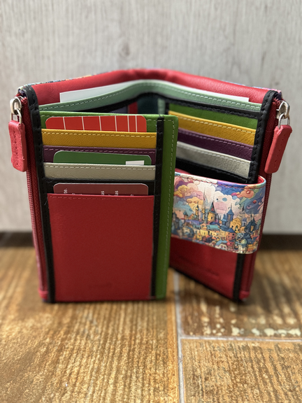 - CAPACIDAD: 10 tarjetas, 2 billeteros, 2 monederos con cremallera y huecos para fotos.