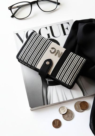 Este billetero de Noco completa la colección diseñada en punto estampado grueso, con el característico patrón de líneas en negro sobre base en tono crema. Un accesorio funcional y elegante que combina diseño y practicidad, perfecto para el uso diario.