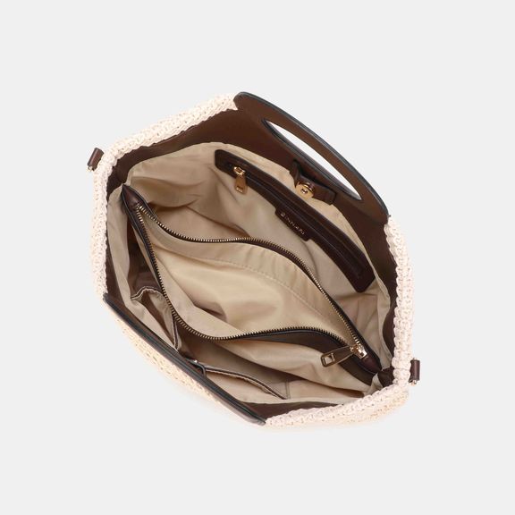 - Confeccionado en rafia textil de alta calidad y detalles en pu