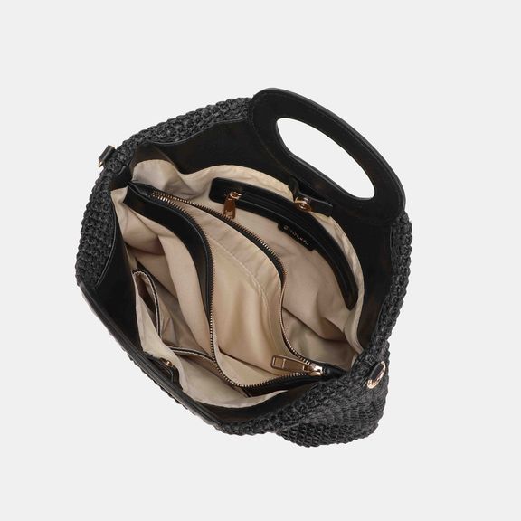 - Confeccionado en rafia textil de alta calidad y detalles en pu