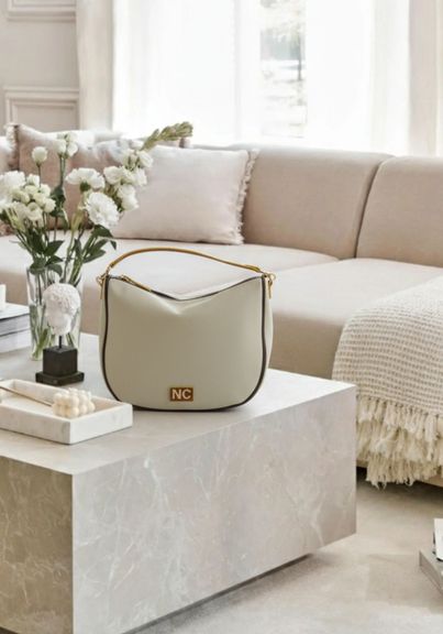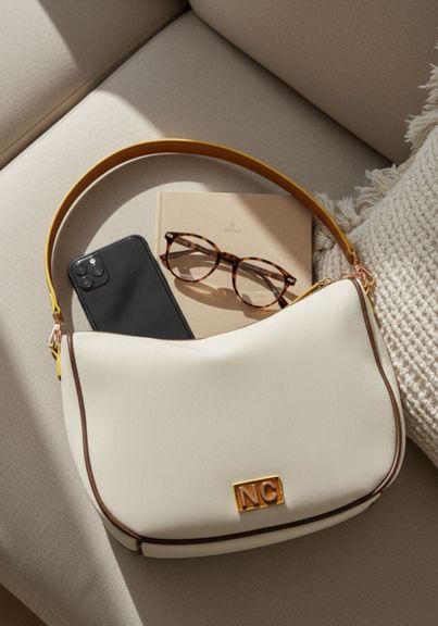 Bolso hobo de lona natural beige, diseñado para mujeres que buscan un bolso ligero, amplio y funcional. Cuenta con cierre superior con cremallera y asa para el hombro, ofreciendo comodidad y facilidad de uso. Su diseño sencillo pero lleno de detalles, junto con el logo NC de NOCO en metal dorado sobre un cuadrito de piel camel con bordes amarillos, aporta estilo y elegancia. Ideal para llevar todo lo necesario sin perder ligereza, perfecto para el día a día, oficina o planes urbanos.