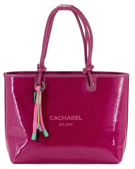 Cuenta con doble asa larga, pensada para llevar cómodamente al hombro, con un diseño anudado que aporta un toque original y distintivo. En la parte frontal luce el logo de CACHAREL al tono, integrado de forma elegante y discreta.